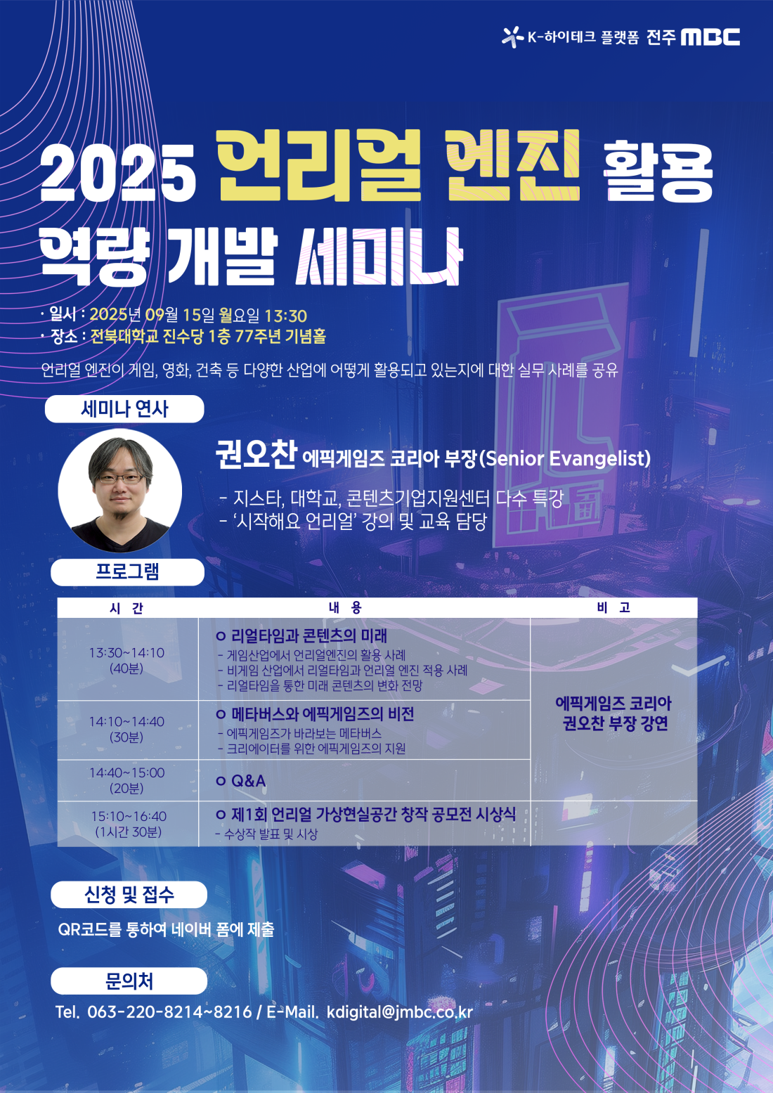 전주MBC에서 SW중심대학사업단과 공동 주관으로 [2025 언리얼 엔진 활용 역량 개발 세미나]를 개최합니다.