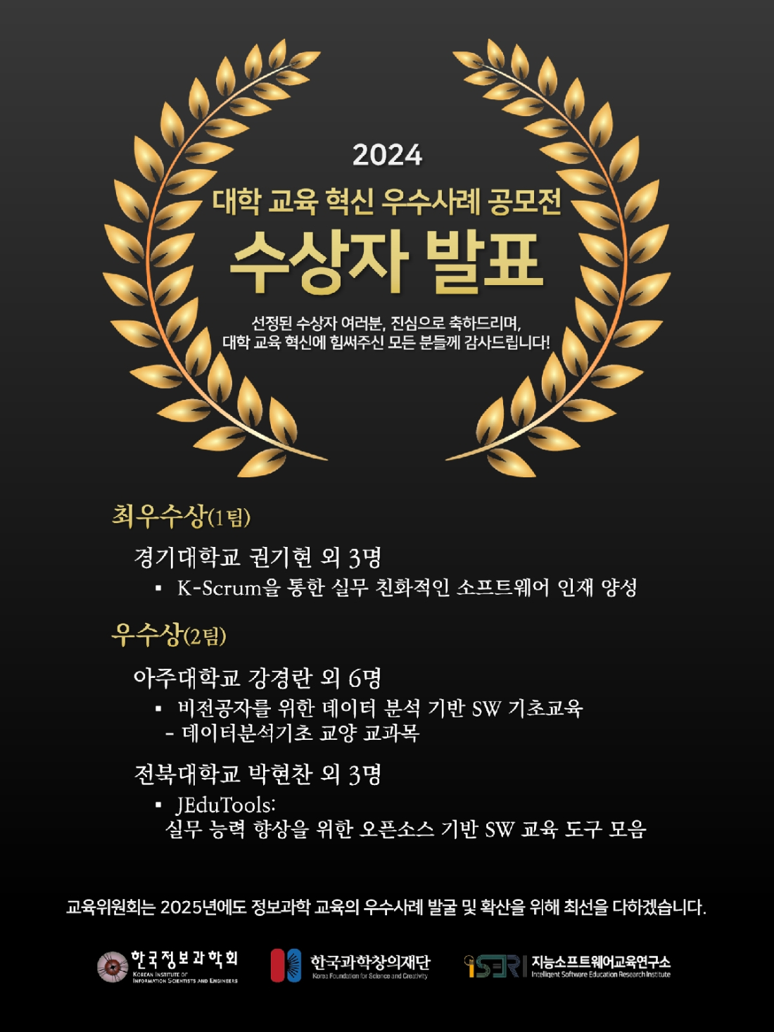 전북대학교가 한국정보과학회 교육위원회가 주관한 ‘2024 대학 교육 혁신 우수사례 공모전’에서 우수상을 수상했다.