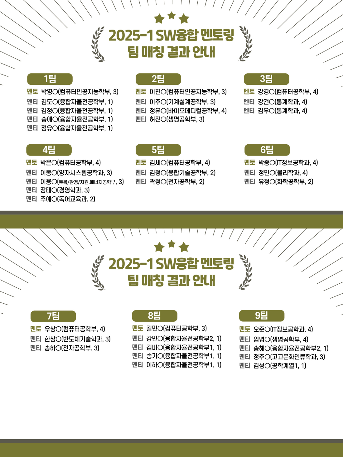 2025학년도 1학기 SW융합 멘토링 프로그램 팀 매칭 결과 안내