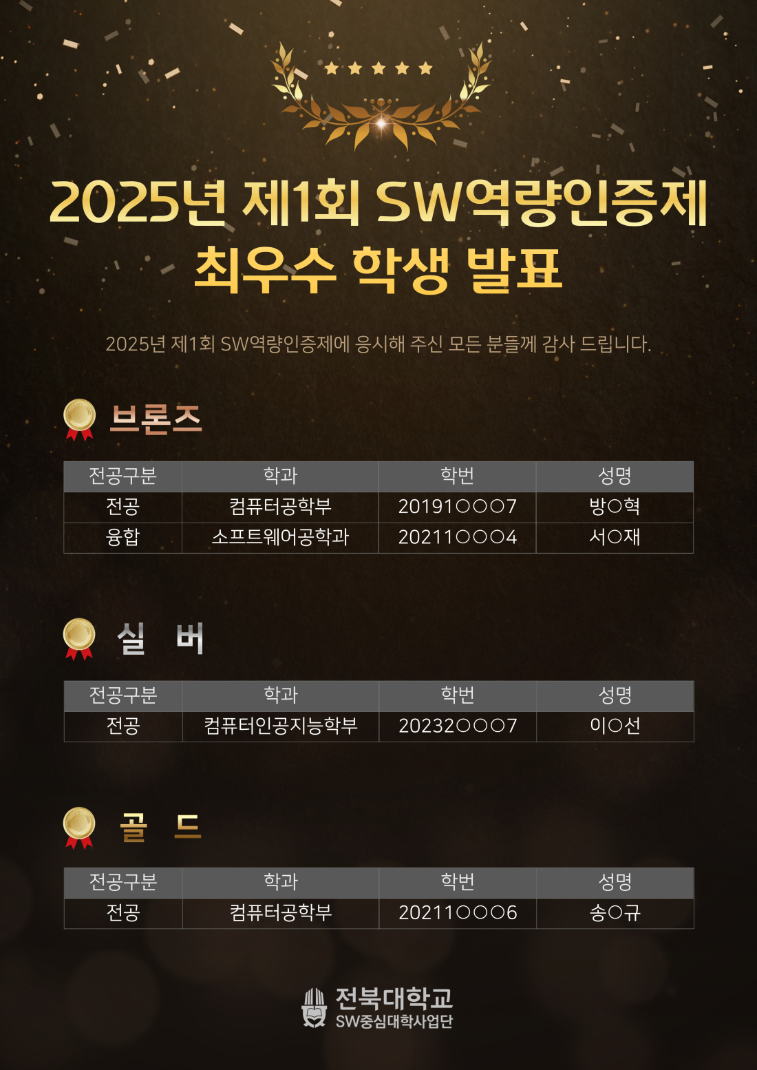 2025년 제1회 SW역량인증제에 응시하여 주신 모든 분들께 감사의 말씀 드립니다.