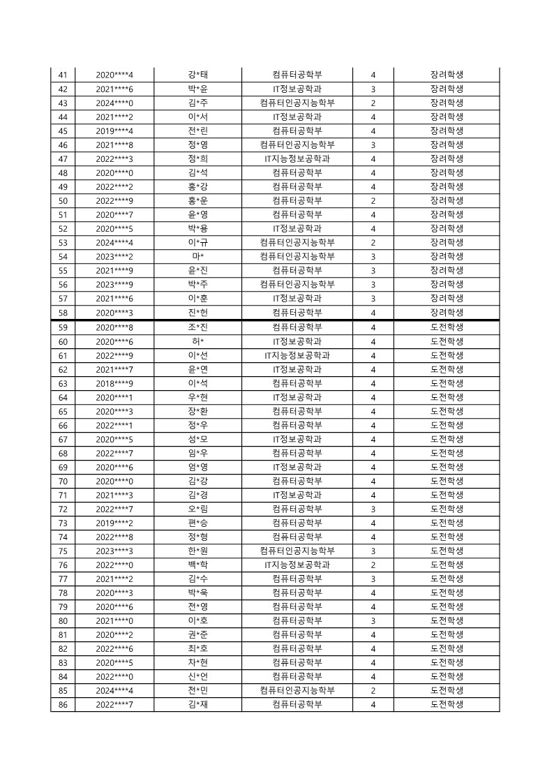 2025학년도 상반기 SW중심대학사업단 SW전공 J-Point 장학생 선발 결과를 안내 드립니다.
