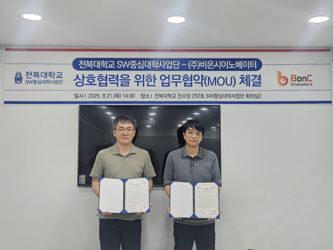 전북대학교 SW중심대학사업단과 (주)비온시이노베이터는 SW교육 혁신과 산업체의 신기술 발전을 위하여 상호 신뢰를 바탕으로
