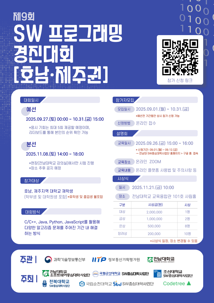 [전남대학교 SW중심대학사업단 주최]제9회 SW프로그래밍경진대회 참가 학생 모집(기간 연장)