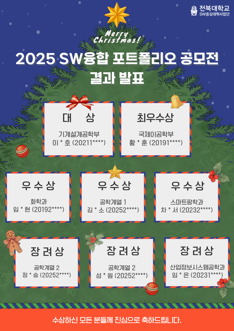 2025 SW융합 포트폴리오 공모전 결과를 위와 같이 안내 드립니다.