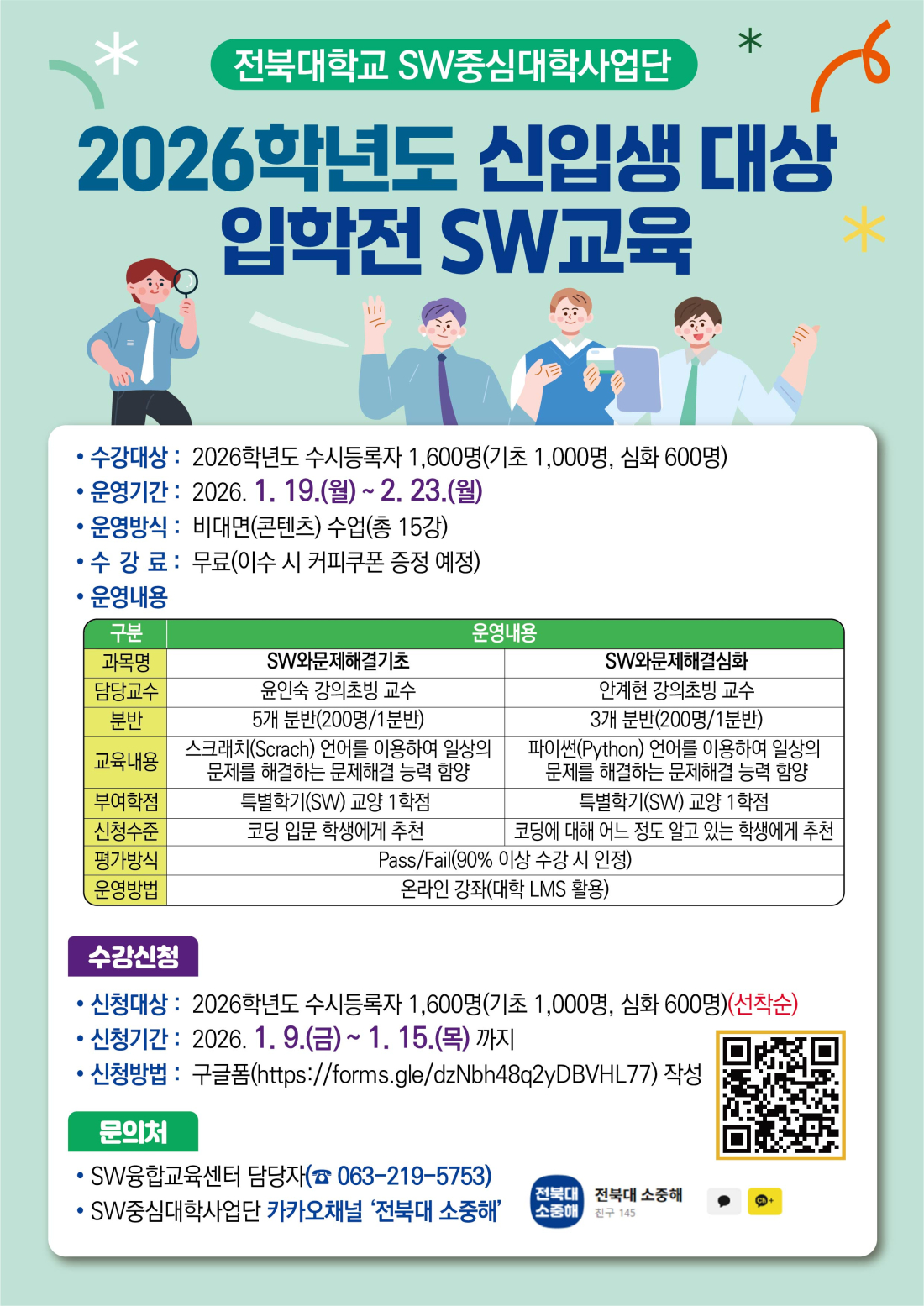 [SW융합교육센터] 2026학년도 신입생 대상 입학전 SW교육 운영 안내