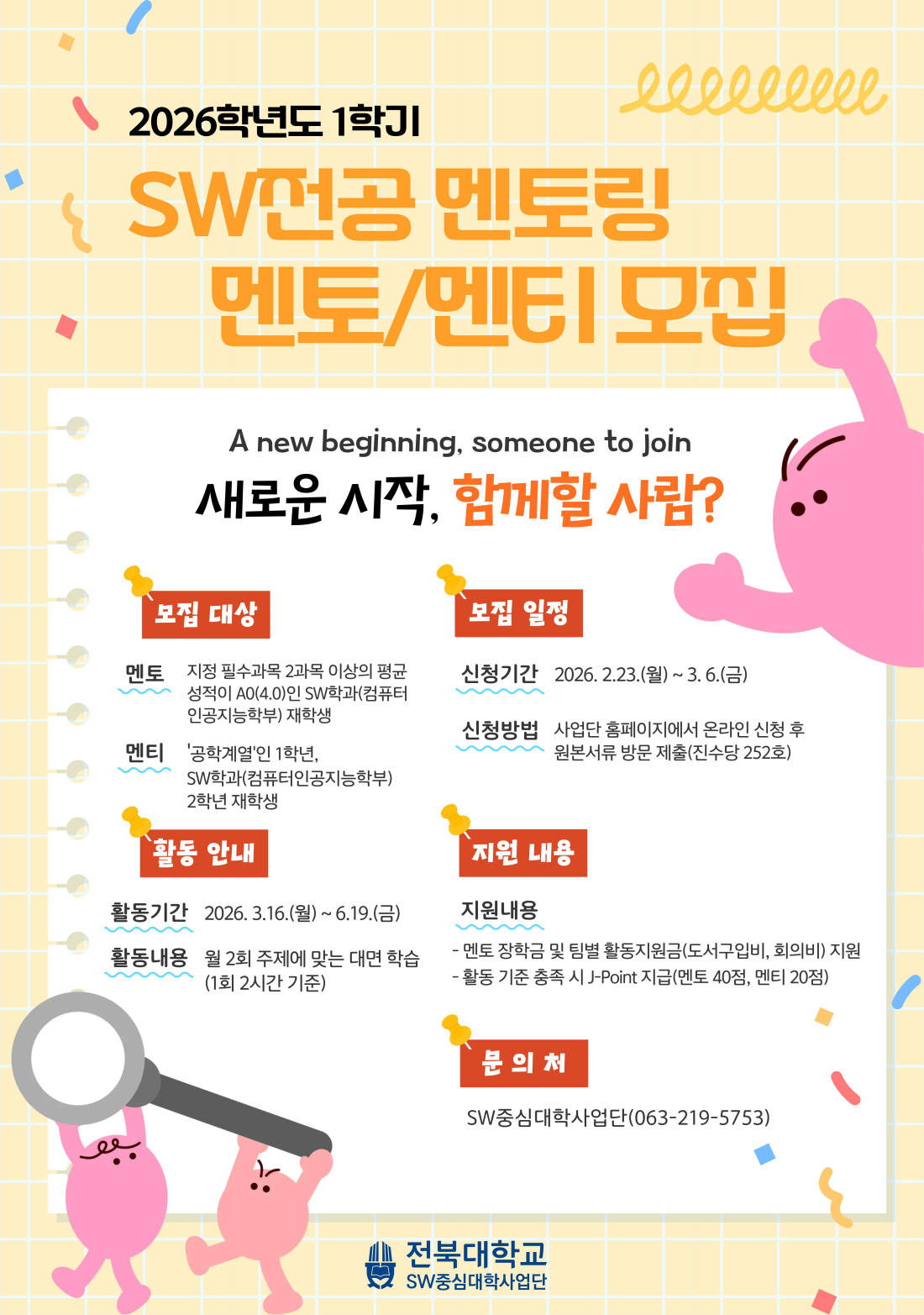 2026학년도 1학기 SW융합 멘토링 프로그램 멘토/멘티 모집 안내