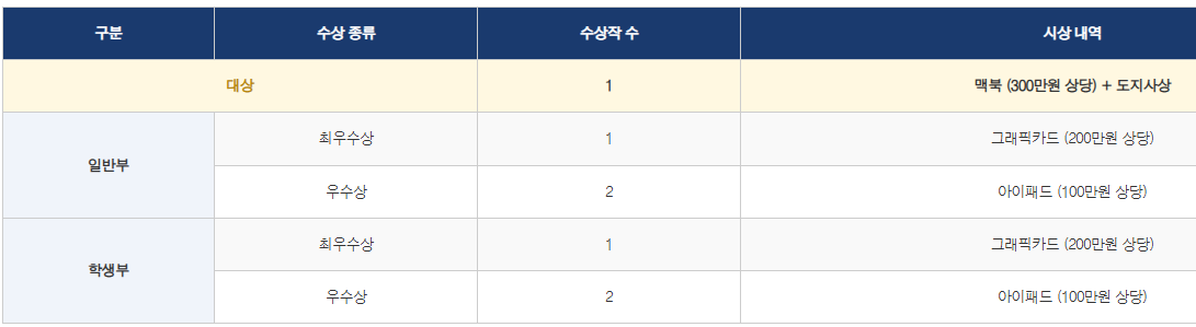 ※ 시상품은 추후 그에 준하는 상품으로 변경될 수 있습니다.